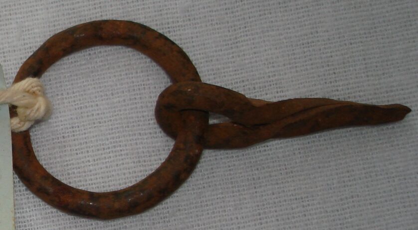 Argola (com prego)administrador4 de junho de 2025Serro (MG) Documento 404_A-1-1-1-4 Baixar MetadadosTÃtuloArgola (com prego)AutorNão identificadoNº anteriorNão encontradoDenominaçãoArgola (com prego)Materialferro | metalTécnicafundiçãoOrigemMinas Geraisdata de produçãoSéc. XIXProcedênciaSerro (MG)Classificação04 Construção > 04.4 Fragmento de ConstruçãoResumo descritivoArgola confeccionada em ferro batido, com corpo em cÃrculo delgado e estrutura em ponta que se prende por pequeno aro para encaixe em estrutura de madeira.Anexos