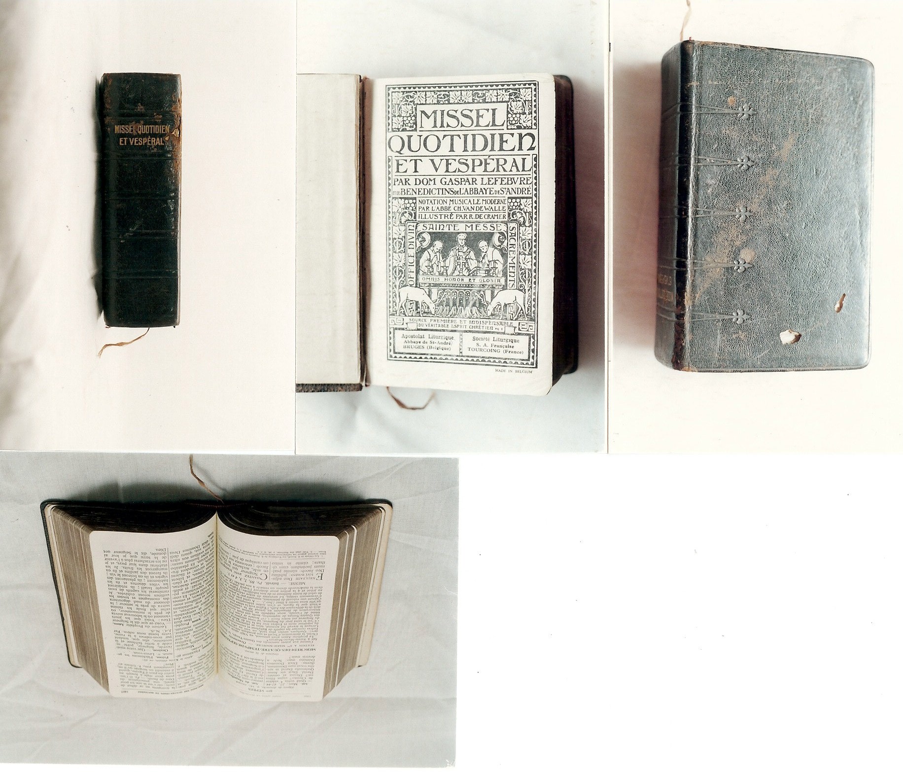 Missal, de pequenas dimensões, impresso em papel fino, com textos em francês e latim, contendo 2816 páginas. Apresenta ilustrações em preto-e-branco. Capa em couro preto, ornado com cinco frisos terminados em flor-de-liz. Na lombada, a inscrição gravada em tinta dourada: "MISSEI QUOTIDIEN/ ET VESPÉRAL". Possui marcador em tecido acetinado vermelho.