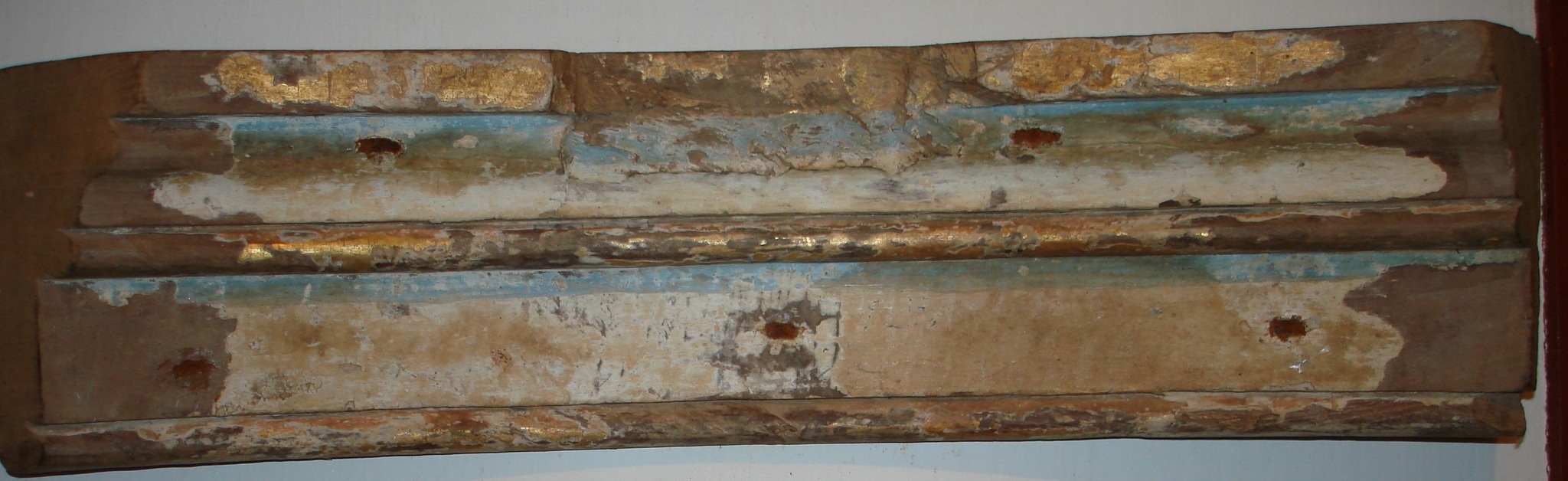 Peça de composição de retábulo, denominada ARCO. Objeto confeccionado em madeira (cedro) entalhada, policromada e dourada, em formato de arco concêntrico, e composta por frisos abaulados. Espaço na parte central possivelmente destinado à encaixe de ornato. Vestígios de tinta azul e base de preparação para aplicação do douramento (conhecido como "bolo armênio"). Peça pertencente ao retábulo da antiga Igreja da Purificação (1720).