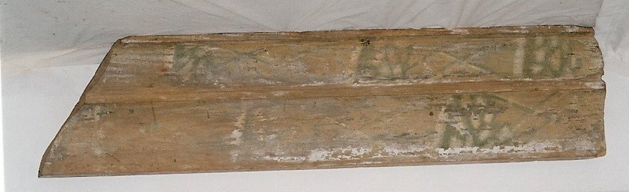 Peça de composição de retábulo, denominada ENTABLAMENTO. Objeto confeccionado em madeira (cedro) entalhada e policromada, de estrutura horizontal e retilínea, com superfície inferior abaulada, que se adequa harmonicamente à estrutura da construção. Apresenta vestígios de marmorizado nos tons bege, verde e branco. Lado direito da peça com recorte pertencente ao retábulo da antiga Igreja da Purificação (1720).