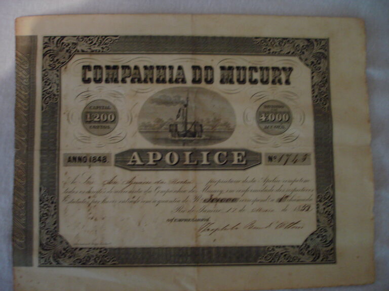 Apólice de Ações nº 1748 – Companhia Mucury, Apólice