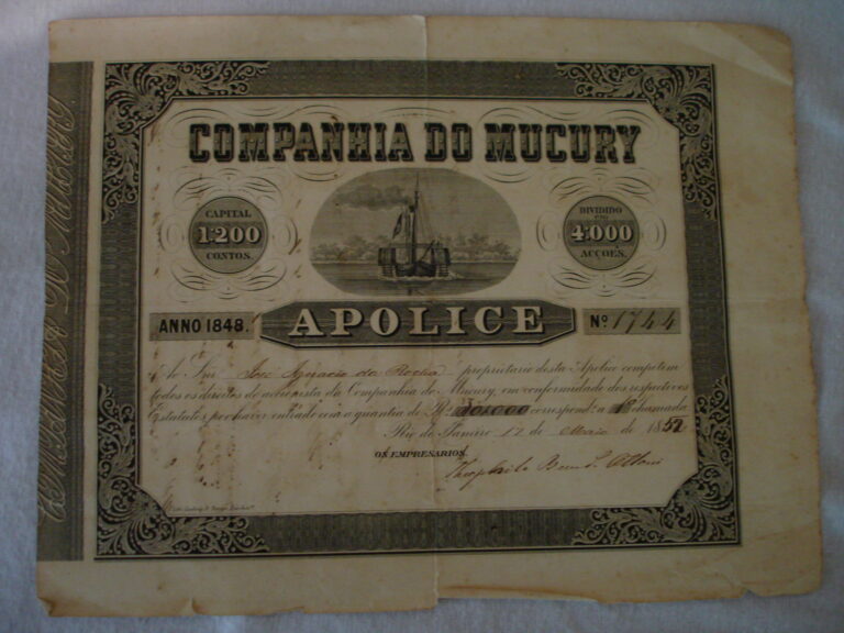 Apólice de Ações nº 1744 – Companhia Mucury, Apólice